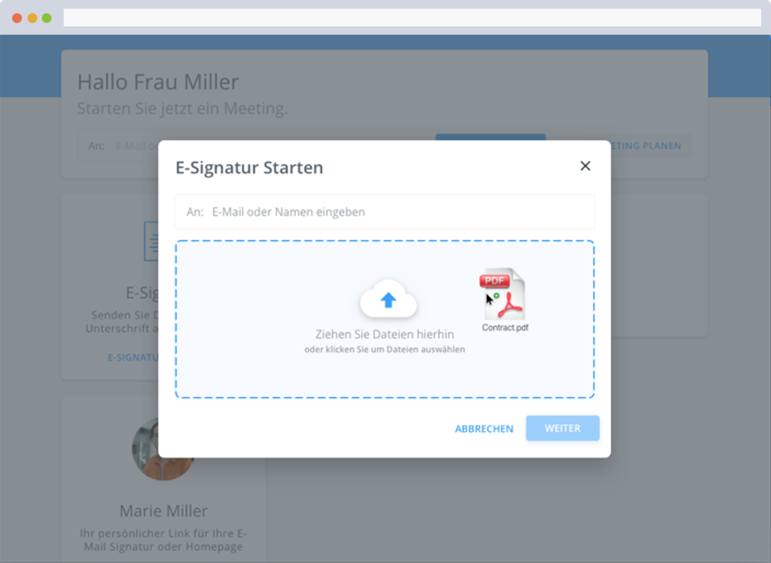 Mit einem simplen Klick starten Sie ein Online-Meeting mit Ihrem Kunden. Ohne Downloads und in HD-Qualität.